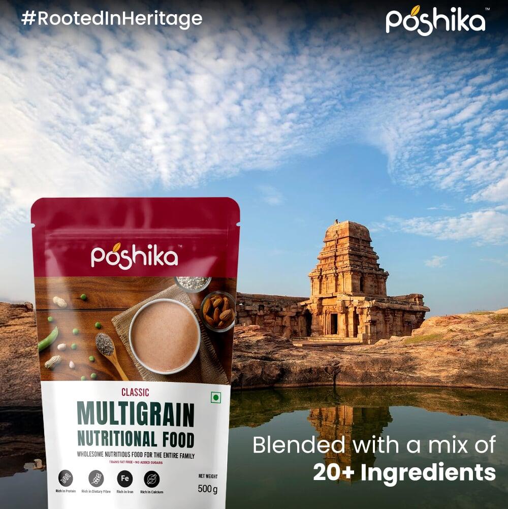 As Porridge/Ganji - Mix three Spoonful’s of Poshika Classic with half cup of milk and half a cup of water, mix well so that no lumps are formed